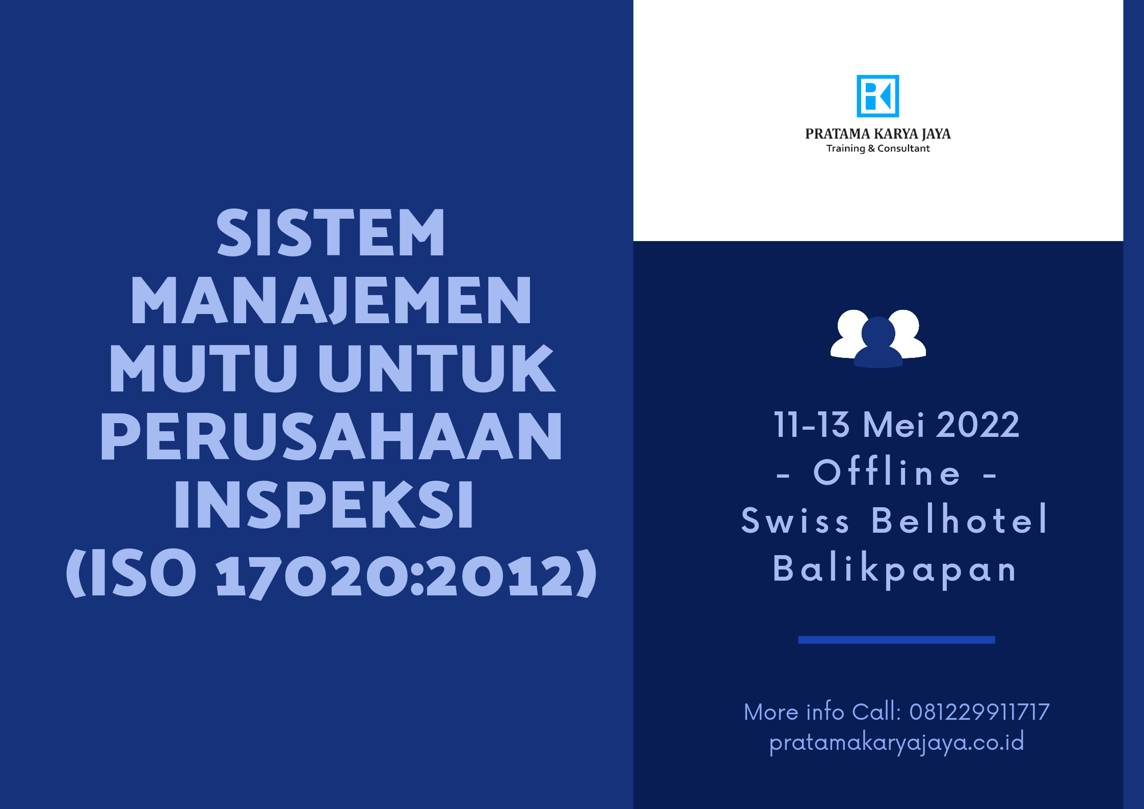 Pelatihan ini dimaksudkan untuk memberi pembekalan yang terpadu tentang Teknik Audit Sistem Manajemen Mutu pada Perusahaan Inspeksi sesuai persyaratan standar ISO 17020:2012 dan memberikan pemahaman atau interpretasi persyaratan standar ISO 17020:2012. Dalam standar ISO 17020:2012 mencakup berbagai kegiatan inspeksi termasuk pemeriksaan bahan, produk, instalasi, pabrik, proses, prosedur kerja atau prosedur jasa dan penentuan kesesuainnya dengan persyaratan serta selanjutnya melaporkan hasil inspeksi.