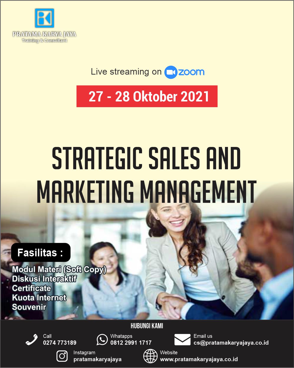 Strategi Sales dan Pemasaran adalah pedoman yang jelas dan praktis mengenai strategi-strategi yang paling efektif untuk menyusun sebuah rencana pemasaran dan penjualan. Khususnya di bagian Revenue di perlukan suatu keterampilan.Marketing yang tertintegrasi dari atasan sampai dengan team yang maju langsung berhadapan dengan pelanggan. Perbedaan strategi di tambah lagi dengan “Pelanggan Behaviour”. Target yang sangat menantang ditahun mendatang, membuat semua bagian dari organisasi harus berjuang untuk dapat mencapai tujuan yang telah di tetapkan bersama.